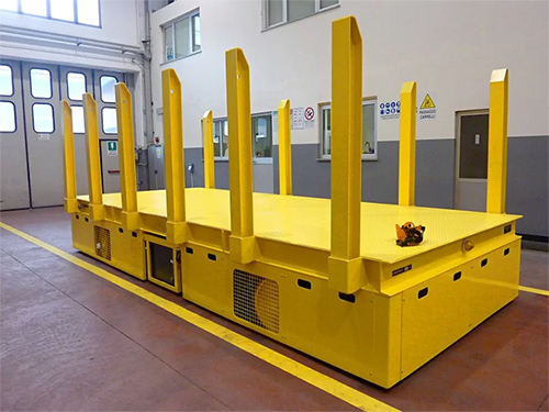 1. 超高载重能力:专为重型货物转运设计,载重可达50吨,适配重型作业需求。2. 防护结构完善:车身配备多根加高防护立柱,可对长条状、管状及大件类货物有效限位防护。3. 环保节能续航久:采用高效电池驱动,无尾气排放,续航能力持久。4. 运行性能优异:动力强劲且运行平稳,适配仓库、工厂等重型作业场景。5. 安全操控可靠:操控灵活,配备先进制动与安全系统,保障作业安全。